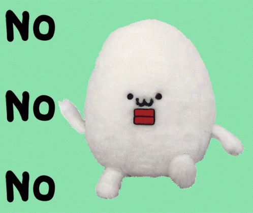 Mr. Egg, the Negative Egg character, struggles and says 'NO NO NO' in a cute, animated clip.