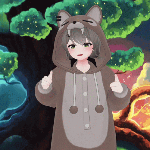 Viichan, the Isegye Idol character, gives a cheerful thumbs up while wearing an adorable animal onesie.
