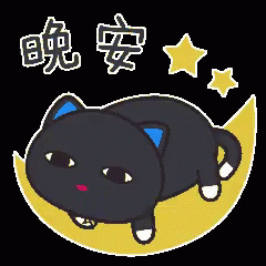 Cute black cat sleeping peacefully on a yellow crescent moon with stars, wishing good night.