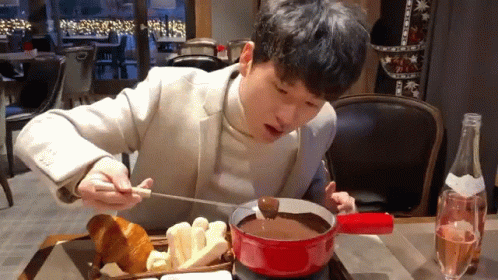Yoonpic enjoys a delicious chocolate fondue, dipping marshmallows and other treats into the rich sauce.