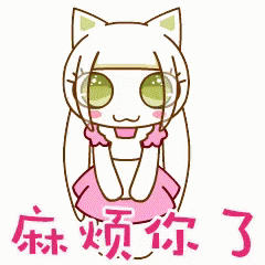 A cute anime cat-eared girl in a pink dress bows apologetically, with the Chinese text "Sorry to trouble you."