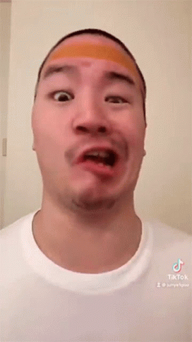 Junya (junya1gou) reacts with pain and a funny face after snapping a rubber band on his forehead.