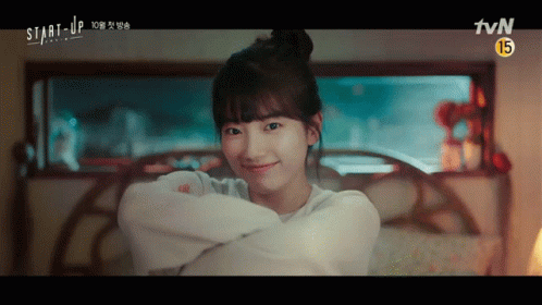 Bae Suzy as Seo Dalmi from the K-drama Start-Up, smiling charmingly in a white top.