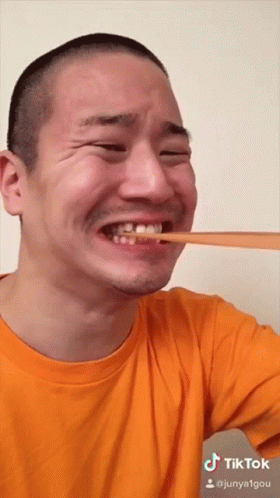 Japanese TikToker Junya makes a pained expression with a rubber band stretched around his mouth.