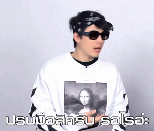 Man in sunglasses and Mona Lisa shirt, gesturing while text 'Clap your hands, what are you waiting for?' appears.