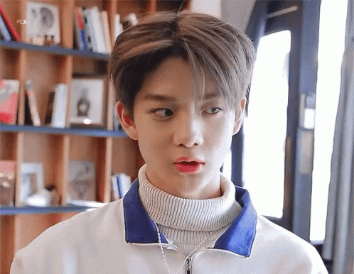 Bae Jinyoung makes a funny face, winks, and forms a hand heart, wearing a white jacket and turtleneck.