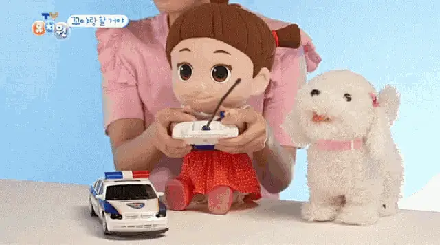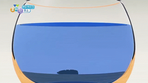 Kkoya from TV Kindergarten wakes up in a fishbowl of blue water, opening eyes and smiling happily.