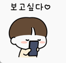 Cute cartoon character Nanachin holding a phone, expressing 'I miss you' with a heart.