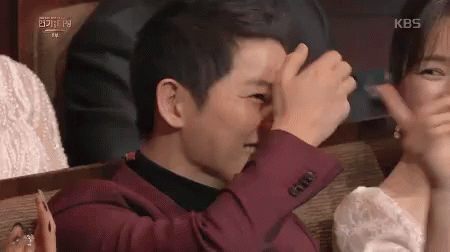 Song Joongki covers his face in embarrassment at the Baeksang Arts Awards, then bows his head.