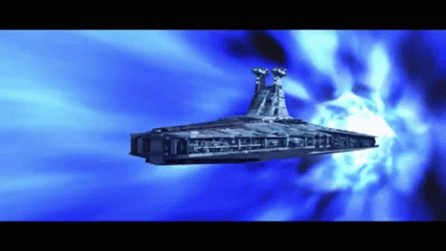 A Venator-class Star Destroyer, associated with the 104th CT Rain, travels through hyperspace.