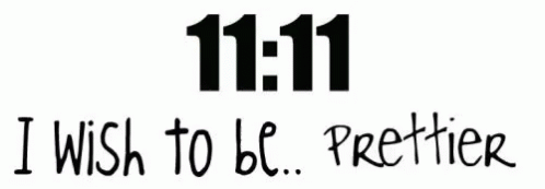 A visual display of '11:11' with wishes to be 'skinny' and 'good enough', relating to lucky numbers.