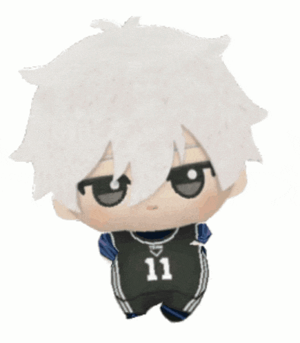 Adorable anime-style plush toy with white hair, wearing a black jersey featuring the number 11.