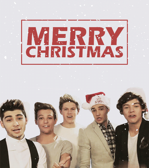 One Direction members wish viewers a Merry Christmas, with falling snowflakes and festive cheer.