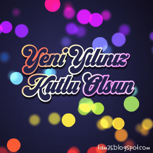 A vibrant New Year's greeting with colorful bokeh lights and the message "Yeni Yılınız Kutlu Olsun".