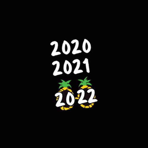 Animated graphic showing 2020 and 2021 crossed out, replaced by two pineapple-themed 2022s.