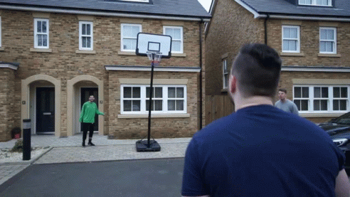 Joey Steltenpool scores 3 points playing basketball with Alejandro Parejo Martinez in a residential driveway.