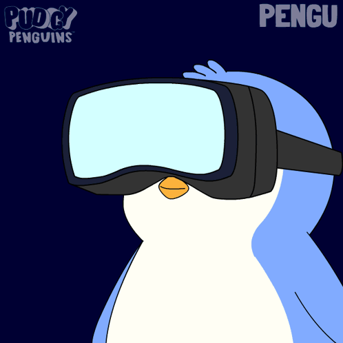 a cartoon of a penguin wearing a virtual reality headset with the name pengu above it