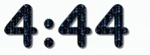 A digital display showing the numbers '4:44' in a textured, black font against a white background.