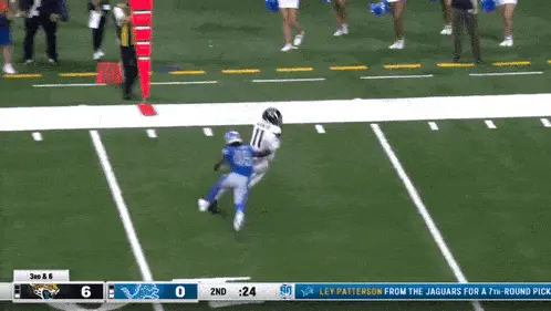 Steve Young, wearing number 81 for the 49ers, throws a touchdown pass in an American Football game.