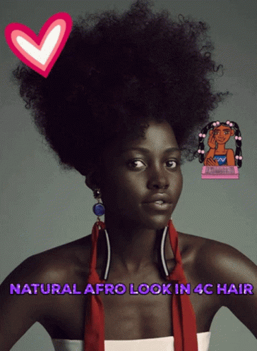 A beautiful woman showcasing a natural afro look with stunning 4C hair, highlighted by on-screen text.