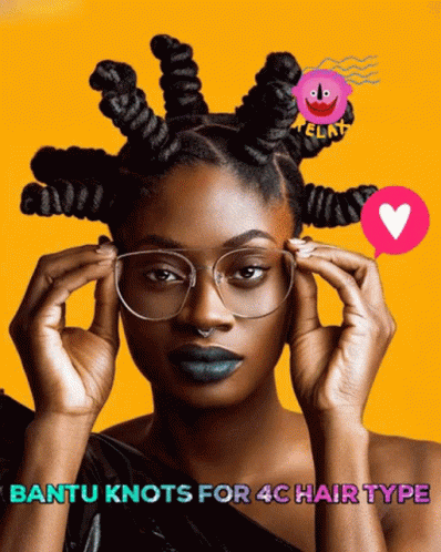 Woman with glasses showcasing Bantu knots, a stylish protective hairstyle for 4C natural hair type.
