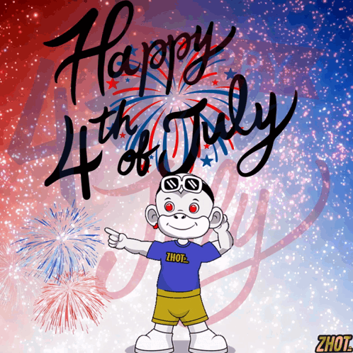 a happy 4th of july greeting with a monkey