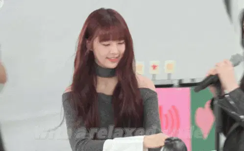 a girl with purple hair is holding a notebook with korean writing