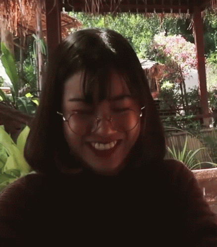 A woman, identified as Waii, laughs heartily with glasses on, as '5555' (hahaha) appears on screen.