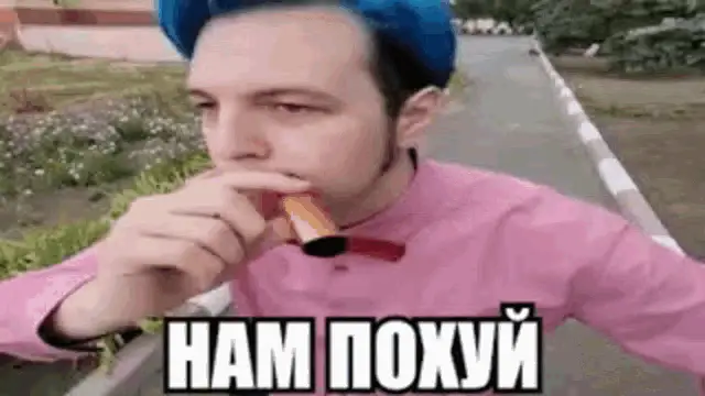 A man, 5opka from ФугаTV, wearing a Fortnite shirt, performs a gun stunt with a toy rifle.