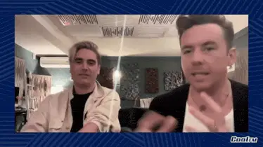 A young man in an RWE jersey sits in a locker room, gesturing and saying '67'.