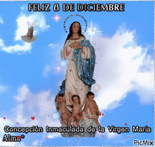 A beautiful image celebrating the Immaculate Conception of the Virgin Mary on December 8th.