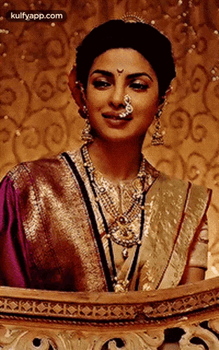 Priyanka Chopra as Kashibai from Bajirao Mastani, adorned in traditional Indian attire and jewelry.