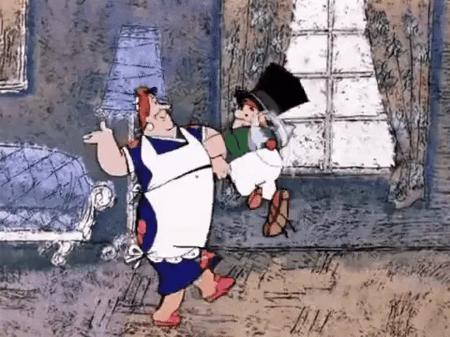 Malysh from Barboskiny says he already came up with a song, then makes a funny face.