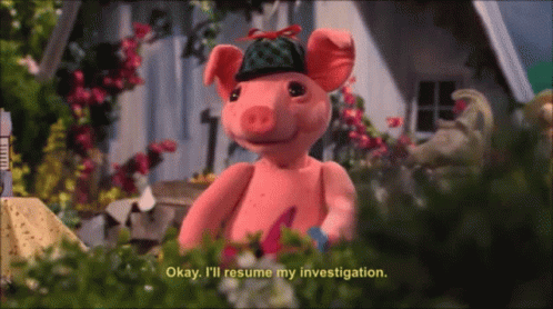 Zenon the pig puppet announces he will resume his investigation into a mystery.
