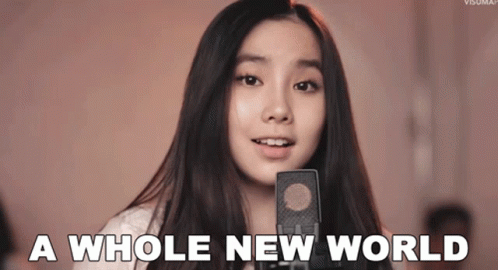 Agatha Chelsea performs a heartfelt cover of 'A Whole New World' into a microphone, showcasing her vocal talent.