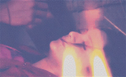 Close-up shots of a man and a woman's faces, overlaid with a distinct grid pattern and stylized colors.