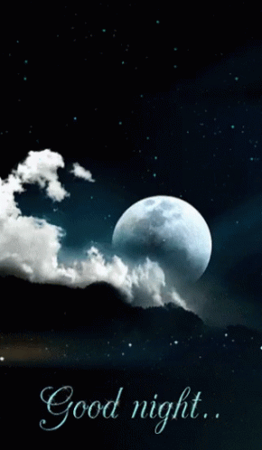 A serene night sky with a full moon, clouds, and a 'Good night..' message.