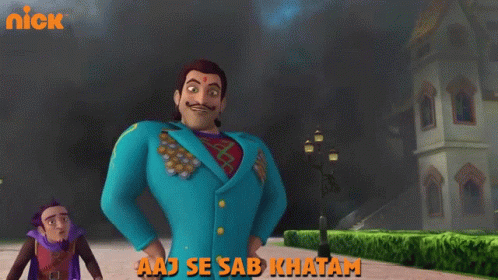 Shakaal declares 'Aaj Se Sab Khatam' in this intense scene from the animated series Rudra, with Zoga looking on.