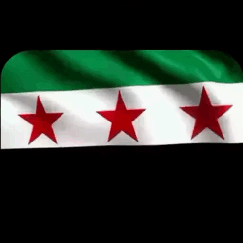 The Syrian Opposition flag, featuring three red stars on a green and white background, waves proudly.