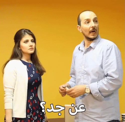Mohamad Osso and a woman react with surprise, captioned 'Really?' in Arabic.