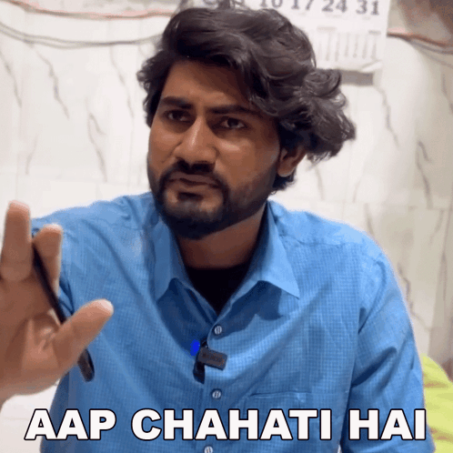 Man in blue shirt says 'Aap Chahati Hai' (Do you want) to Sharukh Jordi.