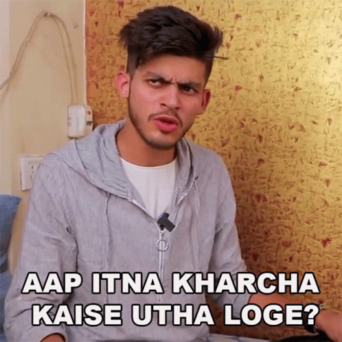 Sumit Bhyan asks 'Aap Itna Kharcha Kaise Utha Loge?' with an expressive face, wearing a grey hoodie.