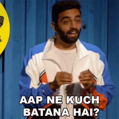 Comedian Rahul Dua asks 'Aap Ne Kuch Batana Hai?' during his stand-up performance on stage.