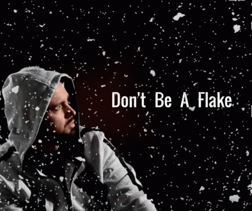 Aaron Janx in a hoodie with falling snow, featuring the text 'Don't Be A Flake'.