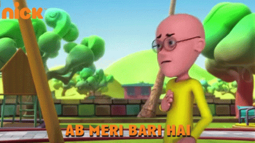 Patlu, the cartoon character, says 'Ab Meri Bari Hai' (Now it's my turn) in a scene from Nickelodeon.