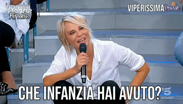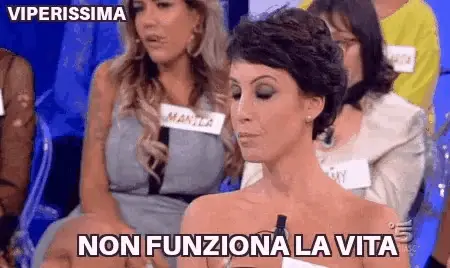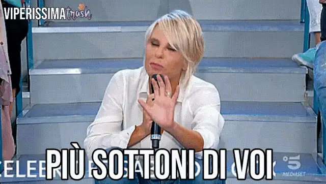 Tina Cipollari animatedly tells a man to 'lower his crest' on the Italian TV show Uomini e Donne.