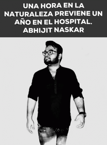 Abhijit Naskar's quote: 'One hour in nature prevents one year in the hospital,' displayed over his black and white photo.