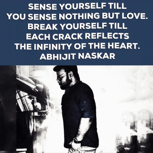 Abhijit Naskar's profound quote: 'Sense yourself till you sense nothing but love. Break yourself till each crack reflects the infinity of the heart.'