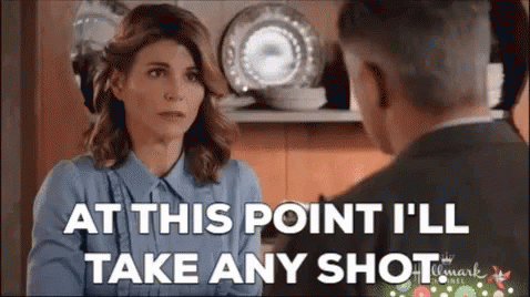 Abigail from WCTH says 'At this point I'll take any shot' to a man in a kitchen.