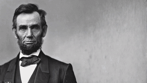 a black and white photo of abraham lincoln with the words " do a cor look si " written on the wall behind him